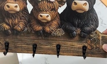 But what really sets this apart is how it makes you feel. Every time I reach for my keys, I can't help but smile at this sweet little Highland cow watching over my entryway. It's like having a friendly farm companion greeting me hello when I come home and wishing me a good day when I leave.